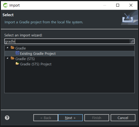 마우스 오른쪽 클릭 -> import -> gradle 입력