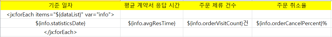 controller에서 beans에 dataList라는 키로 리스트를 put 하였었는데, 해당 키의 리스트를 돌려서 출력을 함
