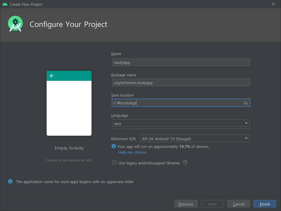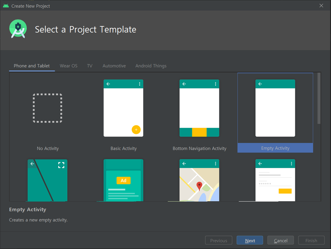 | File - New - Empry Activity |