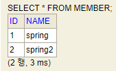 insert into member(name) values('spring2');