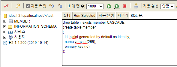 | member 테이블 생성 |