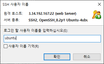 | 위의 사용자 이름 입력후 확인 클릭 |