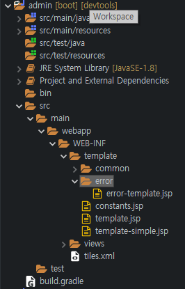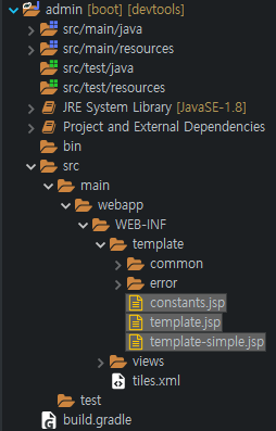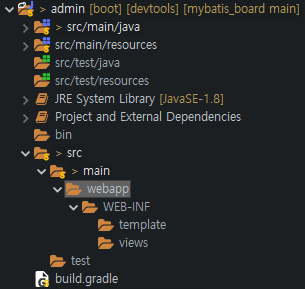 | main 폴더아래 webapp, WEB-INF 폴더 생성후 WEB-INF 폴더안에 template, views 폴더 생성 |