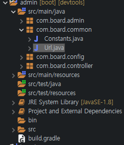 | admin 패키지에 common 패키지 생성후 안에 Constants.java 생성 |