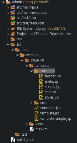 -> tiles를 크게 meta, styles, scripts, header, snb, template로 나눔