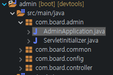 | 전장에 만들었던 Admin 프로젝트 run 파일 수정 (AdminApplication.java 수정) |