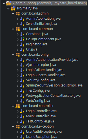 | admin 프로젝트 java 파일들 |