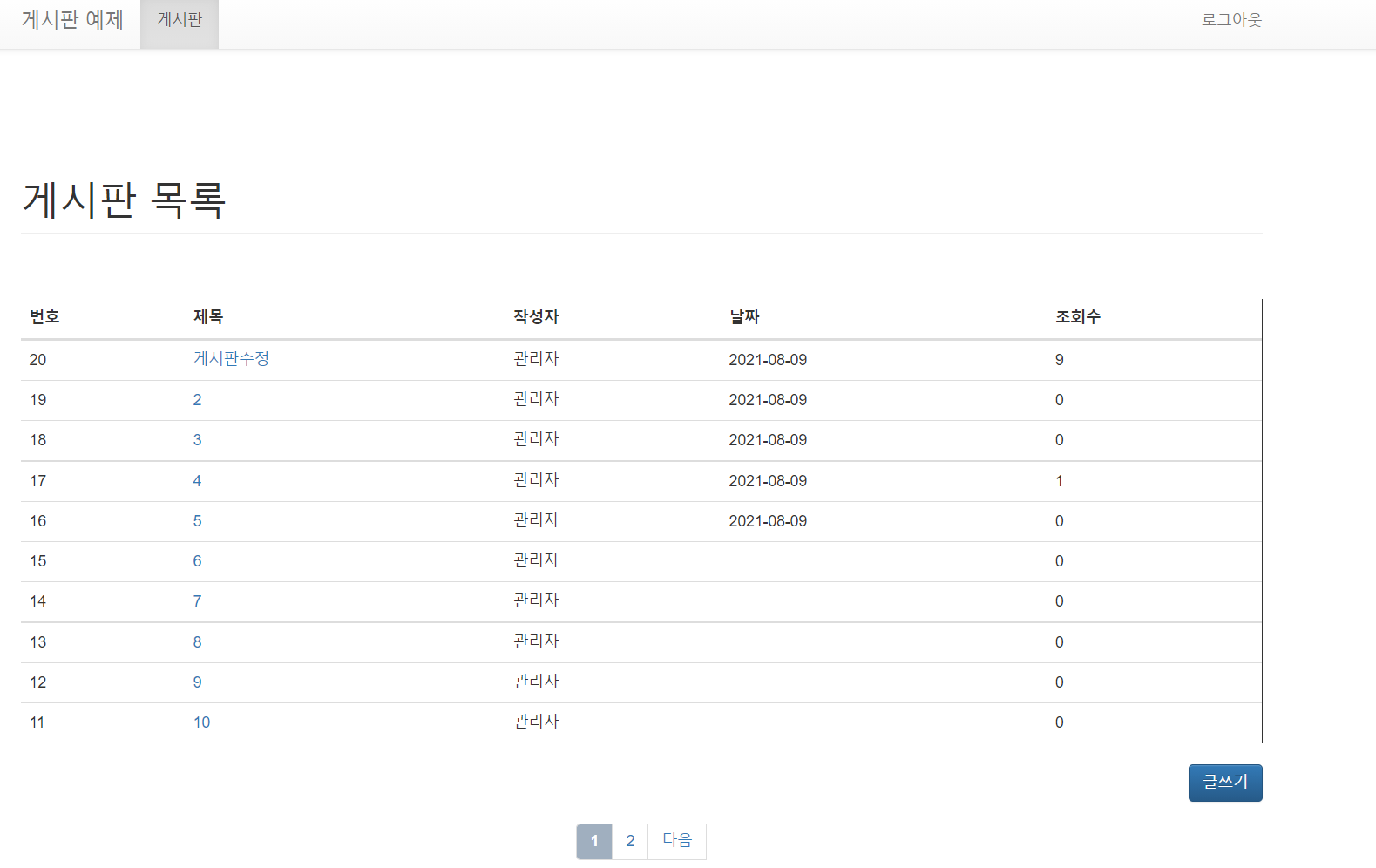 | 게시판 화면 (로그인하였을경우) |