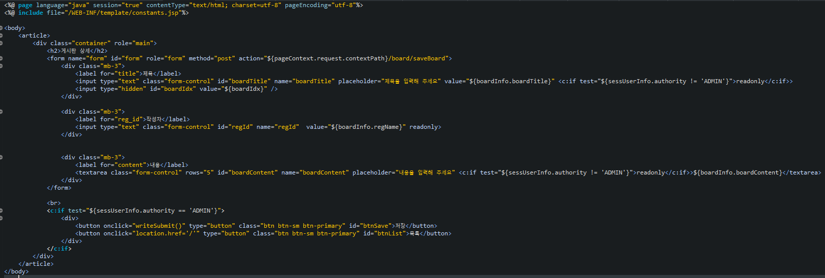 jsp 파일을 생성할수 있고 코드에 색깔이 생긴것을 볼수있습니다.