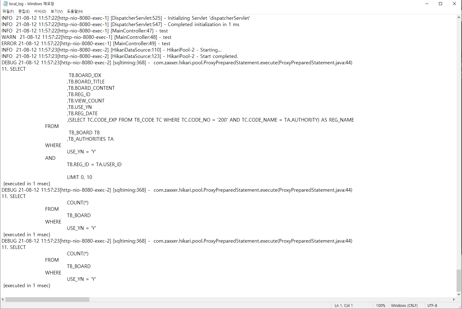 spring.datasource.url=jdbc:log4jdbc:mysql://localhost:3306/TB_BOARD?serverTimezone=UTC&characterEncoding=UTF-8