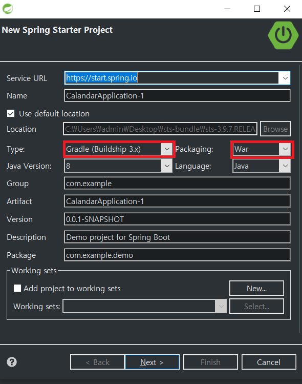 1. 마우스 오른쪽 마우스 - New - Spring Starter Project