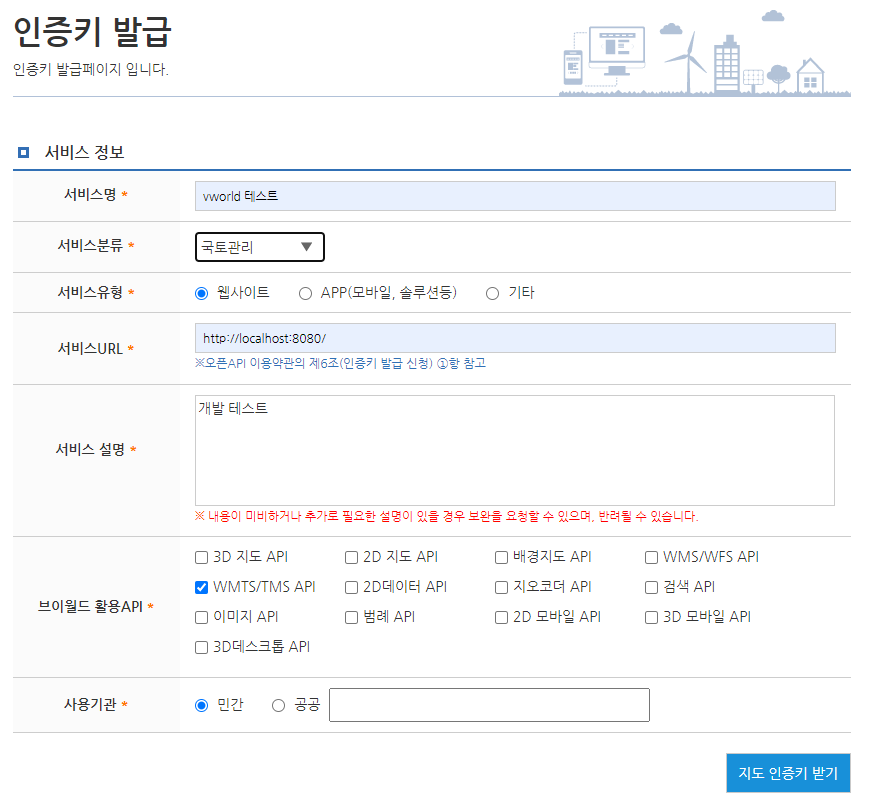 wmts api 인증키 받는법