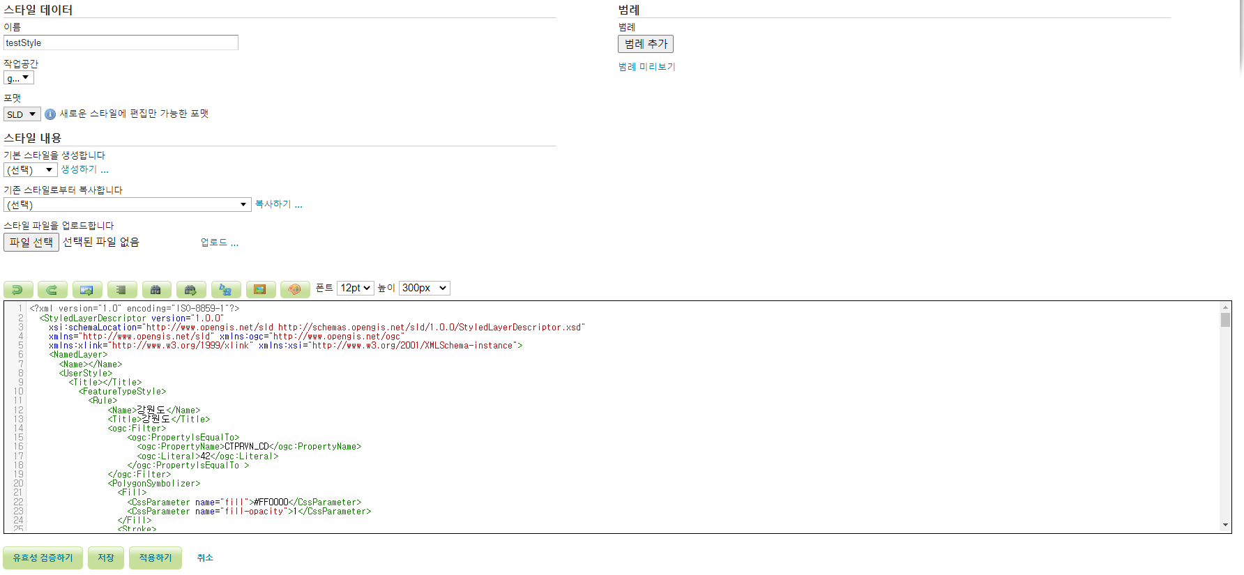 여기서 ogc:PropertyName은 매핑할 스키마 컬럼이름을 넣고