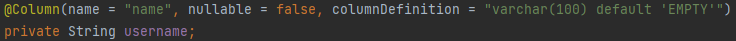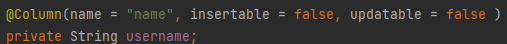 -> 기본값은 true, db에 insert update 강제적으로하면 실행이 되지만, false로 지정할경우 해당 컬럼은 어플리케이션에서 insert, update 실행 x
