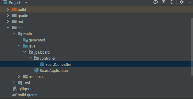 jpa.board 폴더안에 controller 패키지를 생성하고 boardController를 생성합니다.