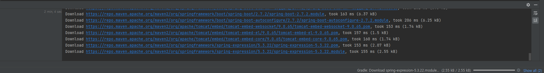 - Spring Web : 처음에 Spring MVC로 개발하기 위해서 사용하는 기본 설정입니다.