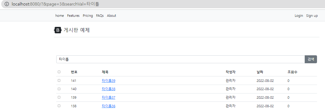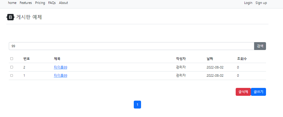- 검색이 정상적으로 동작하고, 페이징 변경시 검색 키워드도 같이 파라미터로 넘어갑니다. 다음장에는 게시판 체크박스 이벤트를 개발해보겠습니다.