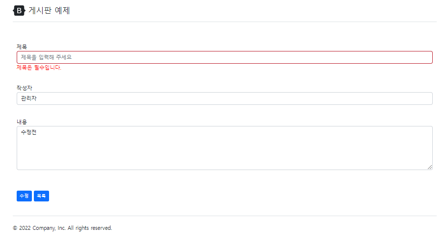 - /update{id} api를 타면 validation 처리를 한후 이상이없으면 저장하는 방식입니다.
