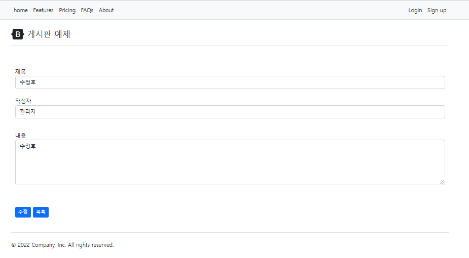 - 게시글이 정상적으로 수정되었습니다. 다음장에는 조회수 업데이트를 개발해보겠습니다.