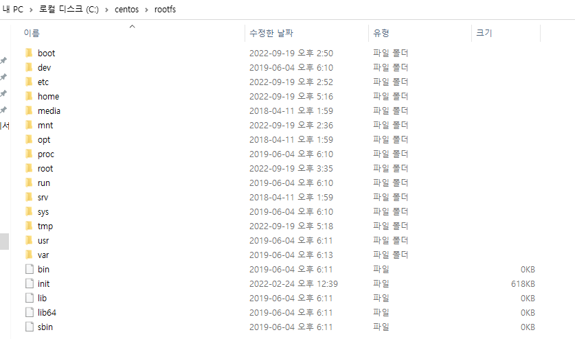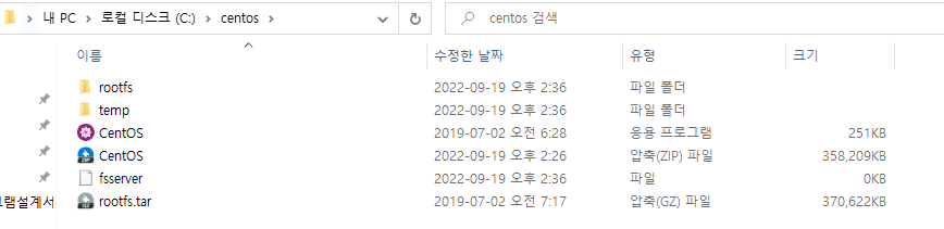 - 저는 C:\centos 폴더에 해제하였습니다.