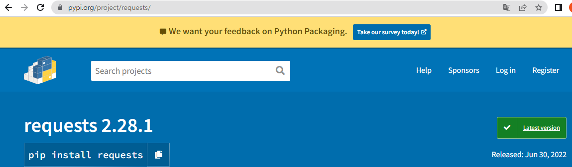 - requests를 사용하려면 구글 검색창에 pip3 requests 검색하면 해당 홈페이지가 나옵니다.