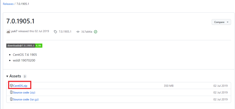 https://github.com/wsldl-pg/CentWSL/releases/tag/7.0.1905.1
