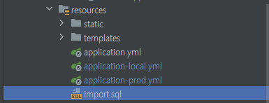 - import.sql은 서버 restart시 실행할 쿼리를 입력하면됨, 글쓴이는 default 사용자 정보 권한을 입력하려고 넣었음