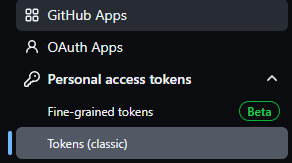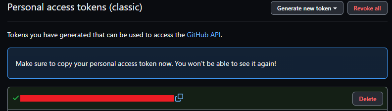 - Tokens (classic)후 Generate new Token (classic) 클릭