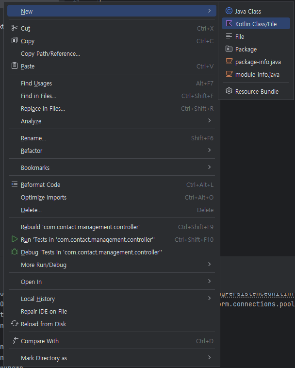 4. New - Kotlin Class/File 클릭후 TestController 생성