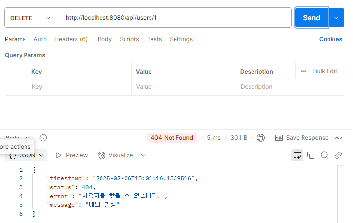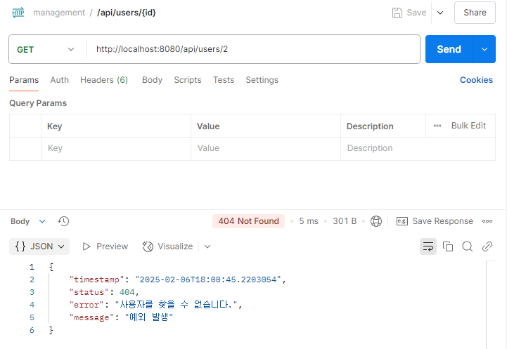 404 Not Found는 요청한 리소스(사용자)가 존재하지 않을 때 사용하는 표준 상태 코드