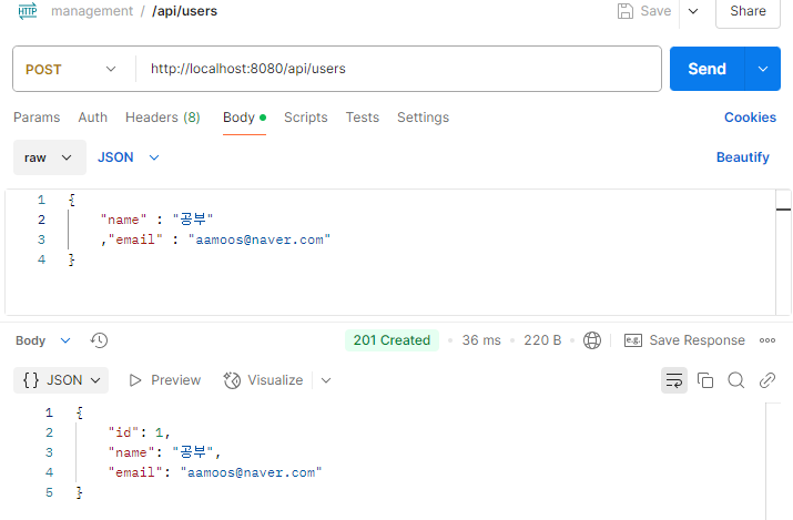 201 새로운 리소스(사용자)가 성공적으로 생성되었음을 명확하게 표시 또한 Location 헤더에 생성된 리소스의 URL을 포함